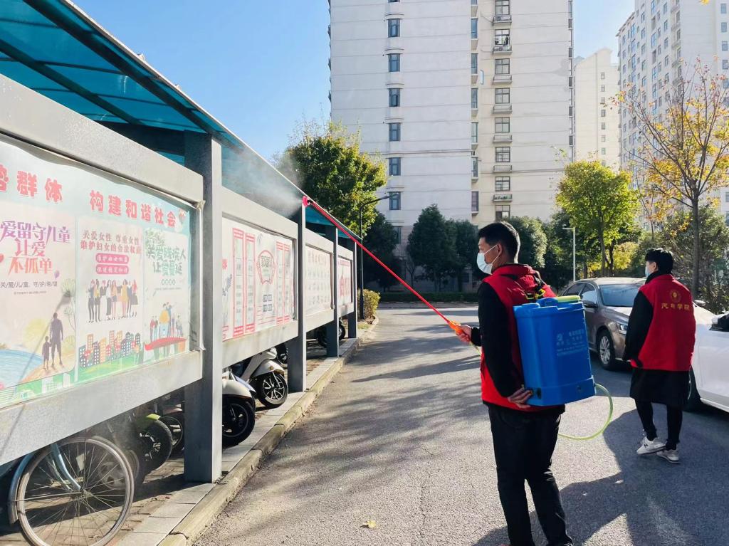 为充分发挥基层党组织和广大党员在社区结对帮建中的战斗堡垒和先锋模范作用,推动党员“双报到”工作走深走实,11月12日上午,开云在线(中国)唯一官方网站党总支开展“携手防疫、呵护和谐洁净家园”主题党日活动,党总支全体支委委员及党员教职工10余人参加。重点针对龙飞苑社区电梯厢、垃圾桶消杀大扫除、防疫宣传等,为巩固疫情防控成果继续贡献党员和志愿者力量。