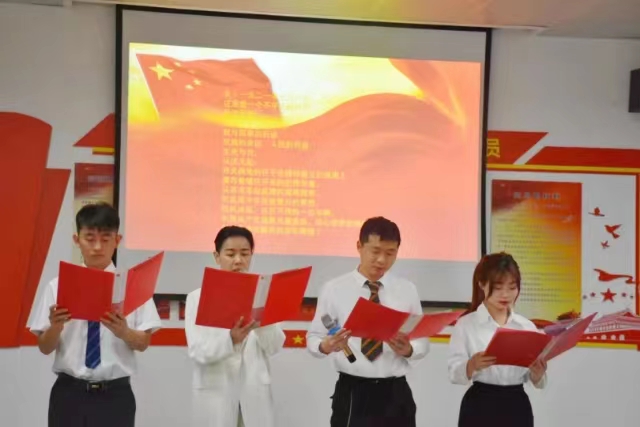 代翔做总结讲话。他指出此次活动非常有意义,是“八个一”系列活动的重要组成部分,丰富了主题党日的活动内容,同时也是一场精神和心灵的洗礼,大家在铿锵有力的诵读和歌声中了解了党的光辉历程,激发了对党和国家的热爱。他强调作为新时代青年,我们要在日后的学习和工作中,严格以党员标准要求自己,明确奋斗方向,努力学习专业知识,精进专业技能,勇担时代责任,让青春在祖国和人民需要的地方绽放绚丽之花,以昂扬的姿态迎接党的二十大的召开。