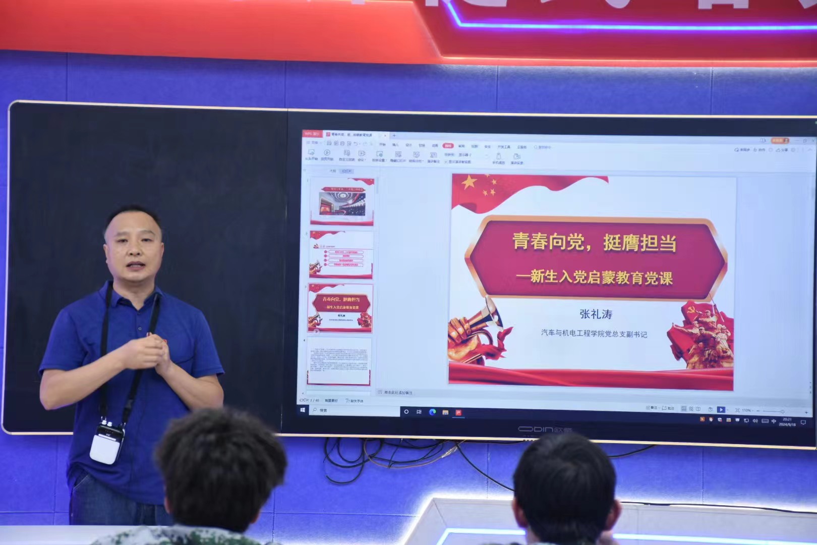 9月18日晚,开云在线(中国)唯一官方网站学工支部以“青春向党,挺膺担当”为主题,开展新生入党启蒙教育,主讲人为学院党总支副书记张礼涛。全体电气自动化专业新生参与了本次入党启蒙教育党课,其他新生班级由辅导员、班主任按党课内容同步进行。