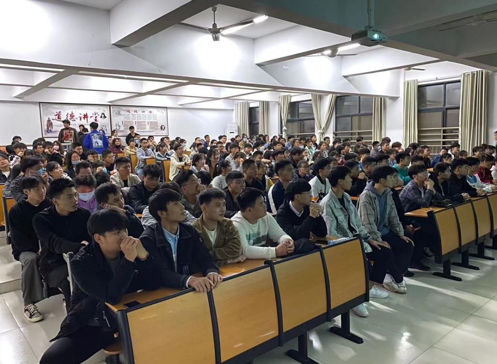 为加强21级汽车类专业新生对专业及职业规划的认知能力,在我院领导班子的沟通和协调下,10月9日晚,郑州宇通集团薛川经理应邀赴我院为21级汽车类专业新生开展了宇通“冠名班”校企合作宣讲会。宣讲会由王平俊副院长主持,汽电学院近170名新生带着对专业学习的向往和未来三年校园生活的憧憬,饱含热情地参加了这场宣讲会。