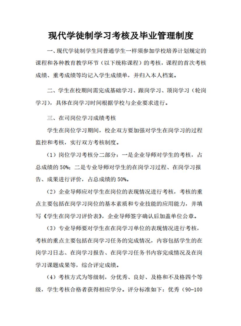 2.1.1 现代学徒制学习考核及毕业管理制度