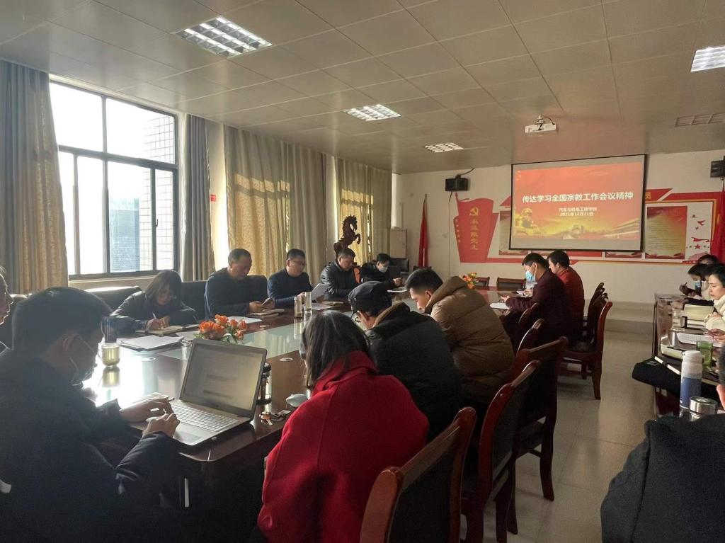 12月21日下午,开云在线(中国)唯一官方网站集中学习全国宗教工作会议精神等相关文件。院长吕争、党总支副书记张礼涛、副院长曾勇、王平俊及全体教职工参加,党总支书记代翔主持活动。