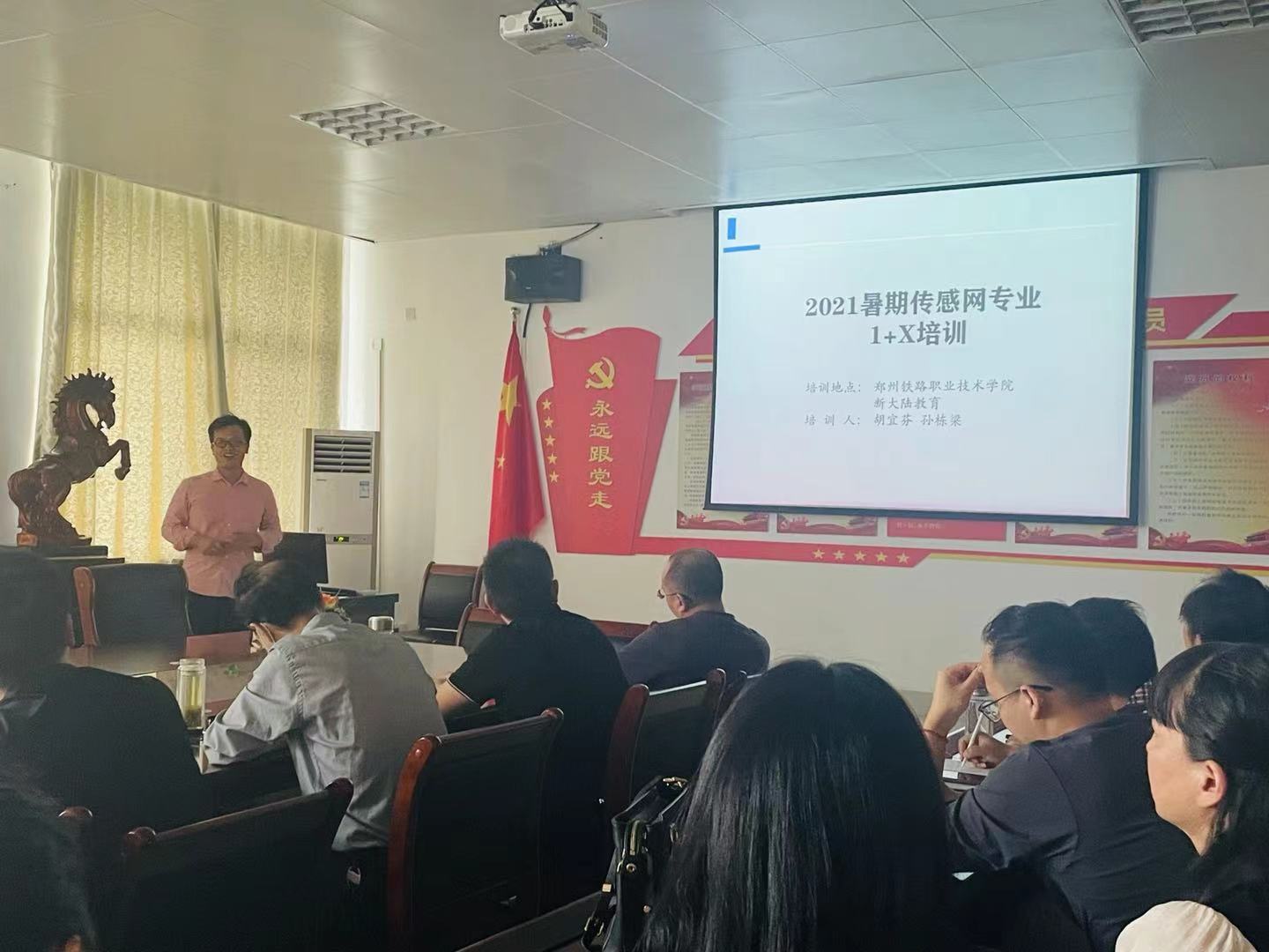 孙栋梁老师对参加的传感网培训进行汇报总结,介绍了STM32以及无线通讯的相关实训项目。随后赵琨老师和张亚平老师分别就国培新能源汽修和三维模型设计的学习内容进行了分享。