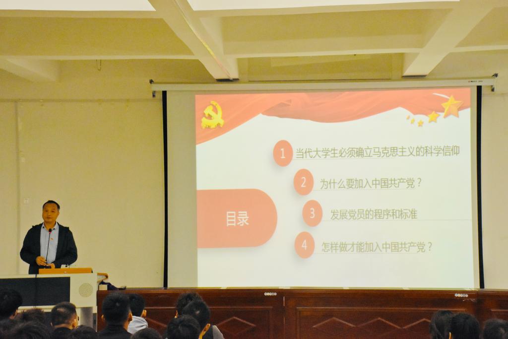 张礼涛为同学们讲述了中国共产党带领中国人民从站起来、富起来到强起来的百年征程,阐述了“为什么青年要争取入党”这一问题,强调了党对青年成长的关键作用,激励同学们积极争取入党。