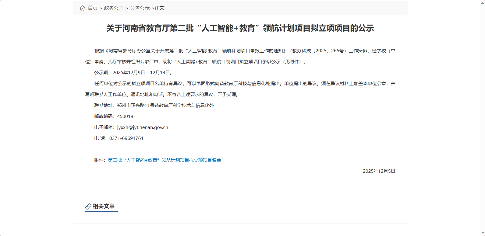 近日,河南省教育厅公布第二批“人工智能+教育”领航计划拟立项名单,我校牵头申报的“职业教育‘工业智能平台+人才’双交付育人创新应用”项目成功入选,标志着我校在职业教育数字化转型与产教融合领域取得重要突破。